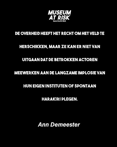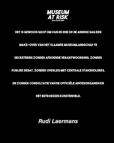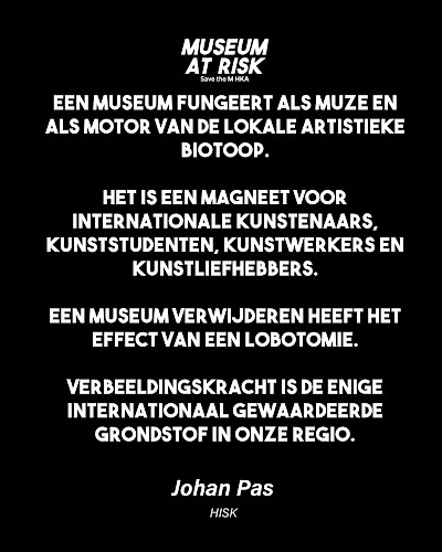 The Museum of Contemporary Art Antwerp (M HKA) is fighting for its survival. Following the sudden announcement by Flemish Minister of Culture Caroline Gennez (Vooruit) to dismantle the M HKA as a museum and transfer its collection to S.M.A.K. in Ghent, the museum—backed by renowned artists, legal experts, and international museum directors—has, together with Museum at Risk, obtained legal advice branding the plans as "flagrantly unlawful". According to the analysis by honorary counsel Leo Neels (Allen & Overy), Gennez’s concept note violates fundamental principles of good governance, including the principle of legitimate expectations, artists’ moral rights, and the obligation to consult.